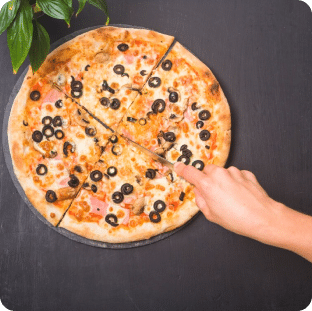 Nous proposons une carte complète avec les grands classiques et des pizzas plus originales, disponibles en petit (29 cm) ou grand format (33 cm) à partager, et même en version chausson pour un repas en solo. Pour accompagner votre pizza, nous proposons aussi des boissons, une pizza sucrée et plusieurs desserts. Le midi, profitez de notre formule à 9,70 € avec une pizza et une boisson. N’hésitez plus, allez découvrir notre carte !
